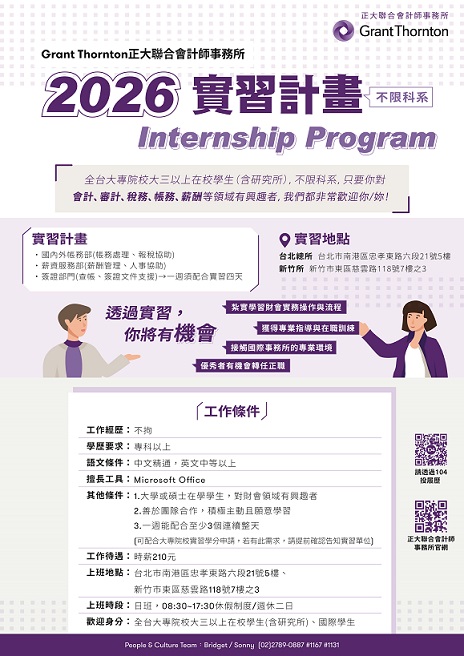 【實習招募】正大聯合會計師事務所-2026實習計畫
